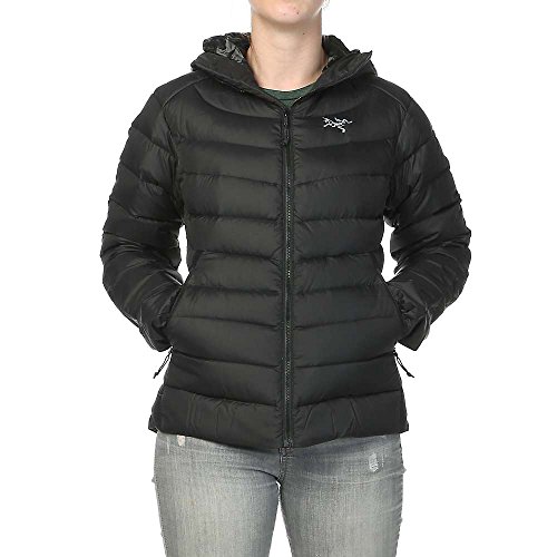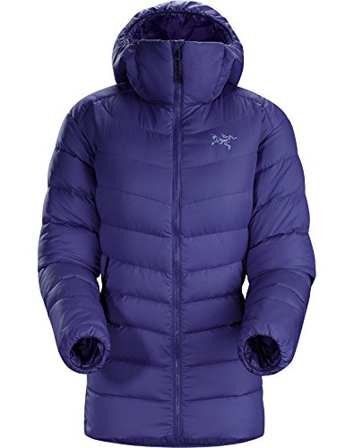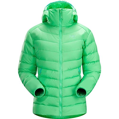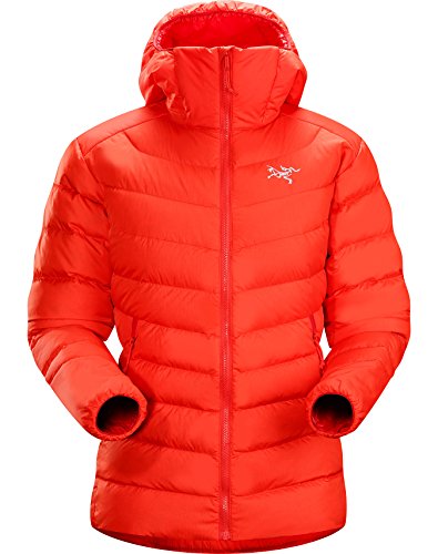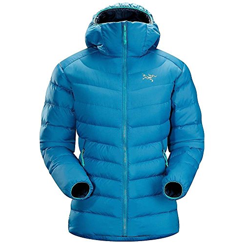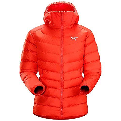FEATURES of the Arcteryx Women's Thorium AR Hoody Soft, durable Arato 40 face fabric withstands abrasion while DWR finish repels moisture Down Composite Mapping strategically places synthetic insulation in areas prone to moisture and down on core areas that need the most warmth Synthetically insulated, low profile StormHood stays warm when wet Conforms closely to the body, trapping heat closer to your core, which is good Packs into it's own pocket or any other small space you can imagine Two zippered hand pockets give you options for storing snacks, candy or other stuff I suppose Low profile, athletic fit layers easily and makes you look super cool Adjustable hem drawcord and elasticized cuffs help to seal out cold Full front zip with chin guard and wind flap adds comfort and keeps wind from ruining your day Corded zipper-pulls reduce noise and are easy to grabFeature