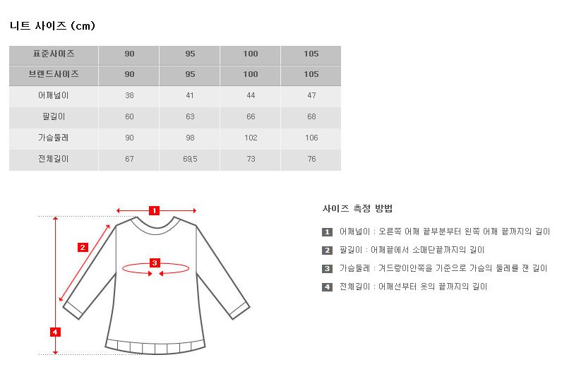 | 표준사이즈 | 90 | 95 | 100 | 105 |