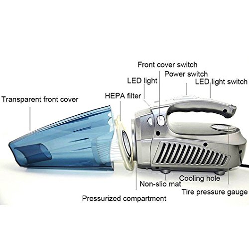 AHAHOO Utility Car Vacuum Cleaner - Tire Pump, Pressure Gauge and LED Lights
