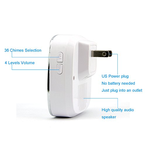 -. Title : RuiLing Portable Wireless Doorbell Kit, 36 Chime Tones Operating at 1000ft/ 300m Range IP44 Waterproof 1 Push Button (Transmitter) with 1 Plug-In Door Chime (AC Receiver)- White