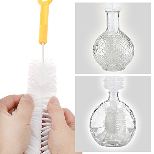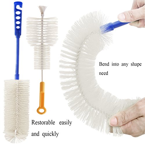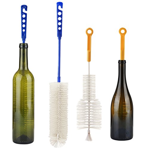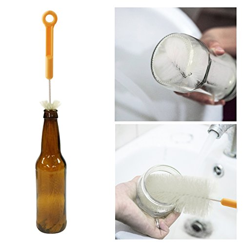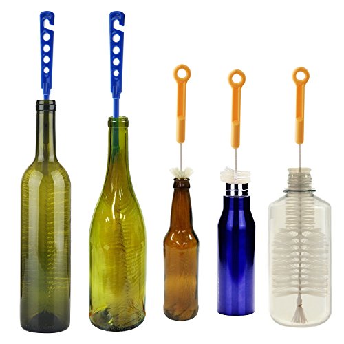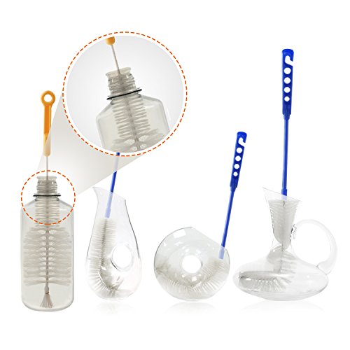 - FITS 1/2" MOUTH OPENINGS:These two brushes can enter any shaped bottle easily; they are thin to fit all narrow neck beer, wine bottles, growlers and many hummingbird feeder openings.