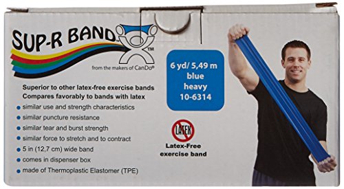 Studio : Fabrication Enterprises Publisher : Fabrication Enterprises Binding : Misc. Product Description Sup-R Band is made from a premium latex free formula and excels compared to other exercise band: our TPE latex free formula has similar use and strength characteristics to latex exercise bands; similar puncture resistance; similar tear and burst strength; requires similar force to stretch and contract; 5" width; has core for use with dispenser systems; made of Thermoplastic Elastomer (TPE); color-coded in Thera-Band colors. Roll is packaged in a dispenser box. Unroll desired length of exercise band from dispenser box and cut with scissors. 0