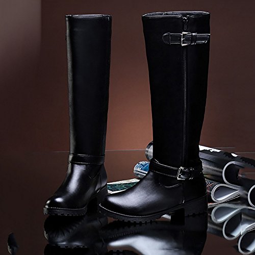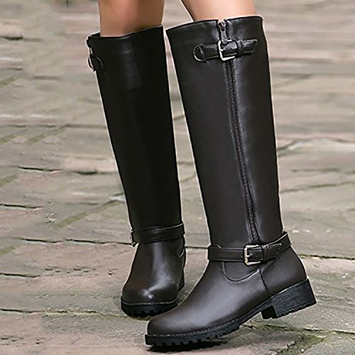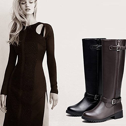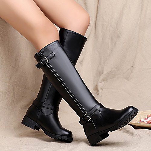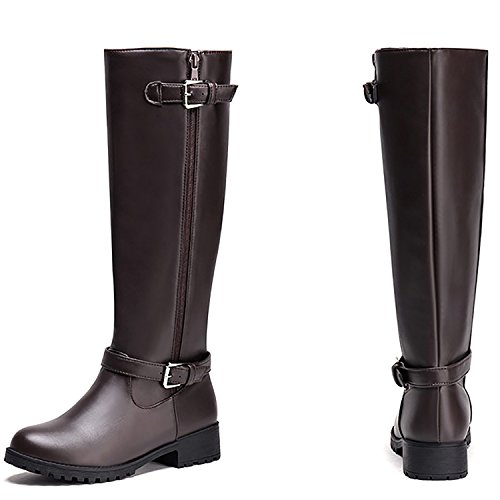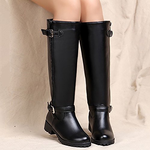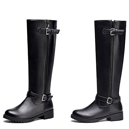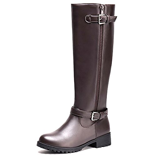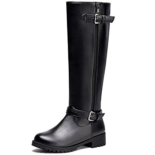 (Odema)/Women's/Boots/DIRECT FROM USA/Odema Knee High Snow Boots For Women Wide Calf PU Leather Zipper Low Heel With Buckles