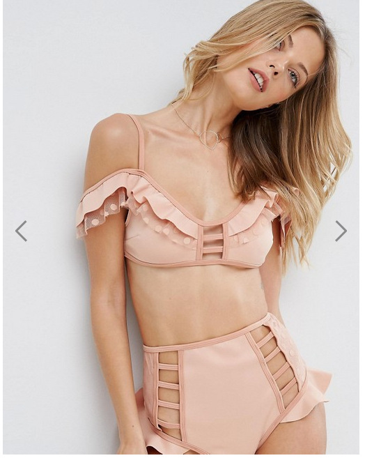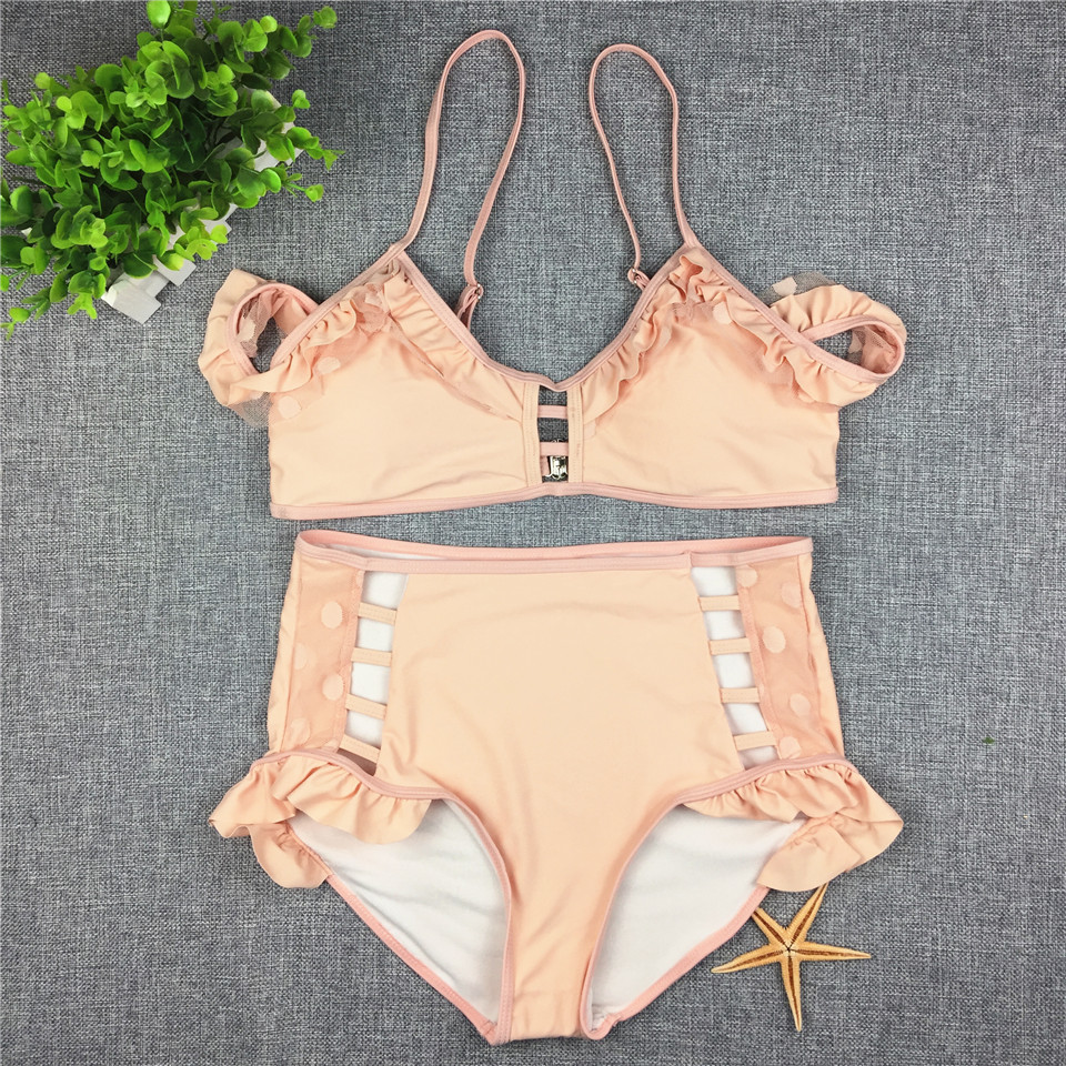 【関連キーワード】フリル ドット柄 レディース 水着 ビキニ オフショルダー ハイウエスト 体型カバー セクシー 大人可愛い