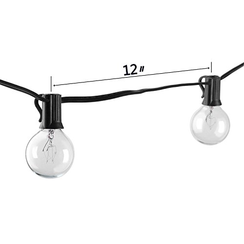 - 50 feet long string with 20 clear G40 Bulbs, end to end connectable
