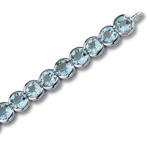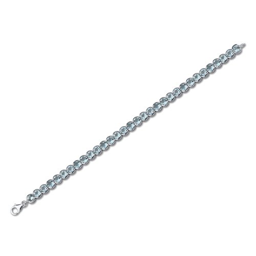 Elegant 19.00 carats total weight Round Cut Swiss Blue Topaz Gemstone Tennis Bracelet in Sterling Silver Rhodium Nickel Finish Stones: Genuine Swiss Blue Topaz : 32 pieces, Round Cut 5.00mm, 19.00 carats total weight Gemstones have a deep rich color and tremendous fire. Bracelet: 15.26 grams Pure Sterling Silver Rhodium Nickel Finish with .925 stamp 7 3/4 length, 3/8 width Approximate Retail Value: $269.99 Bracelet features one of akind design with a beautiful White Gold finish. 100% Money Back Guarantee. Includes a Signature Gift Box.Feature
