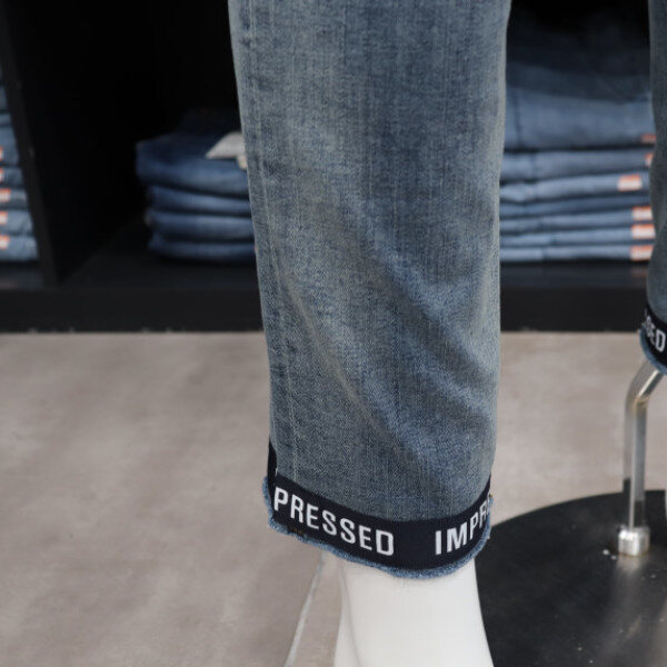 겟유즈드의 L톤 크롭 스키니로 깔끔한 캣브러시 워싱에밑단 테이핑 포인트를 준 스트릿한 느낌의 데님팬츠입니다.