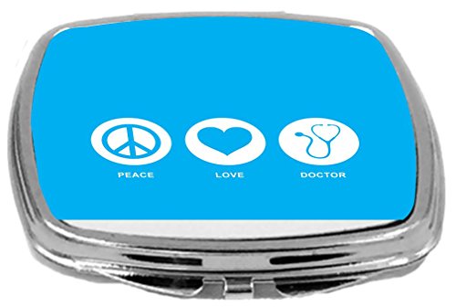 Rikki Knight Peace Love Doctor Design Compact Mirror, Sky Blue, 2 Ounce