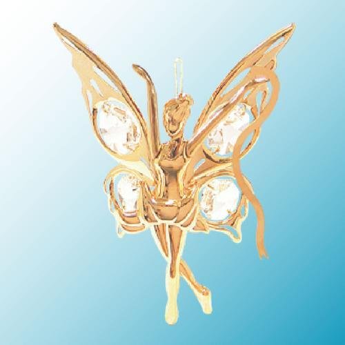 -. Title : 24K Gold Plated Hanging Sun Catcher or Ornament..... Fairy holding a Ribbon with Clear Swarovski Austrian Crystal