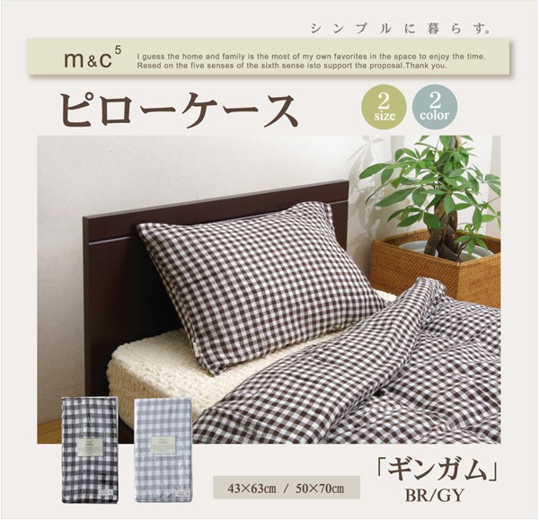 【商品名】寝具カバー 『ギンガム ピローケースLS』 グレー 43×63cm 綿100%