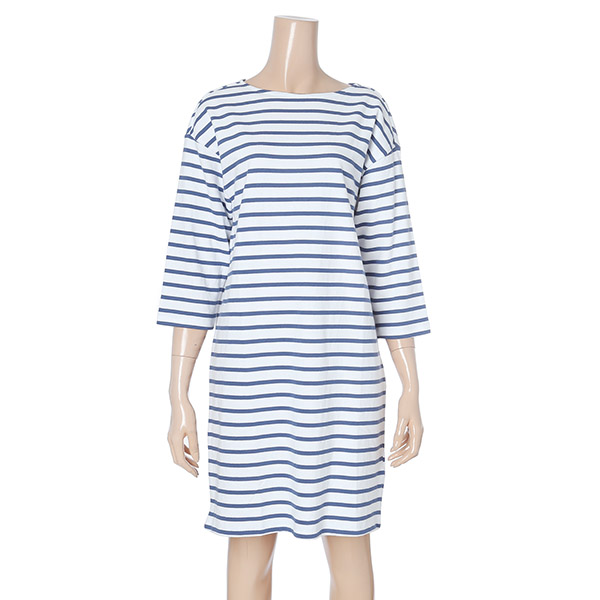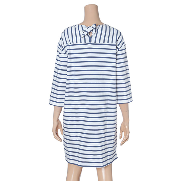 2018년 봄 신상품이며 7부로 되어 있는 스타일의 줄무늬 면 원피스이며 목선 뒷부분에는 리본으로 묶을 수 있으며 편하고 무난하며 착용자의 움직임에 따라 활동성이 좋은 스타일의 7부 면 원피스 | |