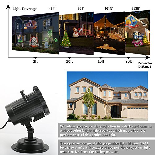 - Wide Display Range: This Slide Show is different from others, It's display range is 323fts² and the square can be adjustable by change the position of the light to enhance the vision effect
