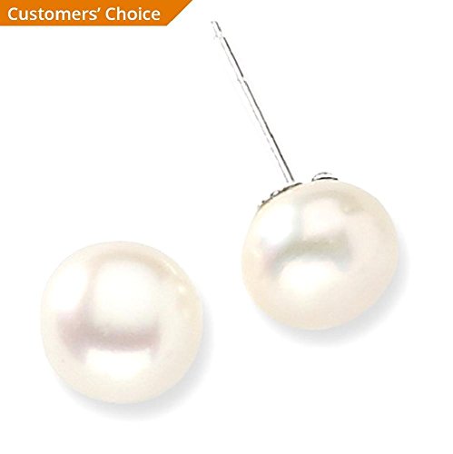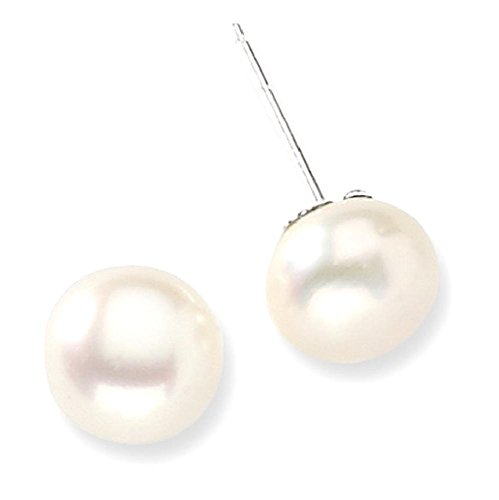 ICECARATS DESIGNER JEWELRY 925 STERLING SILVER 9MM WHITE FRESHWATER CULTURED BUTTON PEARL STUD BALL BUTTON STUD EARRINGS