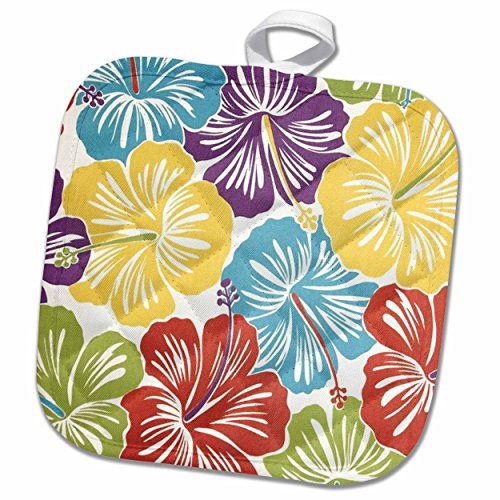 3D Rose Vintage Hawaiian Hibiscus Print Pot Holder, 8" x 8"