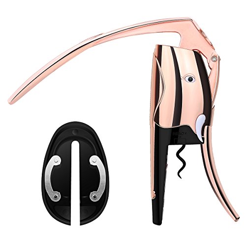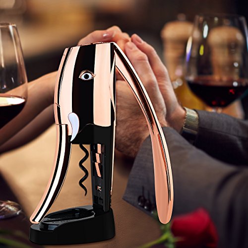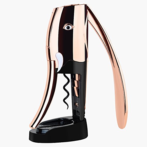 Wine opener lever corckscrew and foil cutter by Maishiteng zinc alloy plating elepahant shape elaborate package best gift (Rose gold)