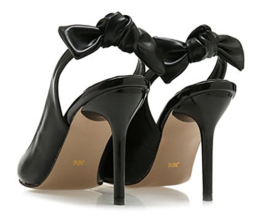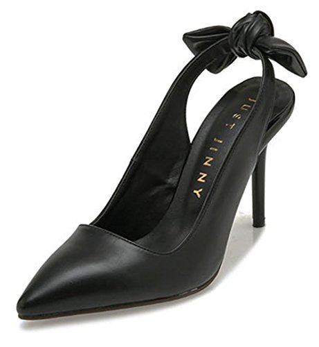 JUST JINNY Black Ribbon Slingback Pumps High Stiletto Heel Shoes For Women
