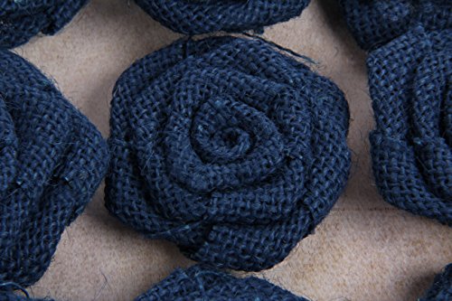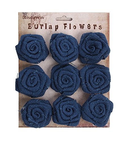 RiscaWin Burlap Rosette Embellishments for Weddings, Hair Accessories, Scrapbooking or Crafts - 9 roses per pack (Navy)