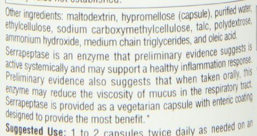 ReleaseDate : 2017-10-04 Studio : Source Naturals Publisher : Source Naturals Binding : Health and Beauty Product Description An enzyme that evidence suggests is active systemically and may support a healthy inflammation response;When taken orally, this enzyme may reduce the viscosity of mucus in the respiratory tract;Vegetarian friendly 0