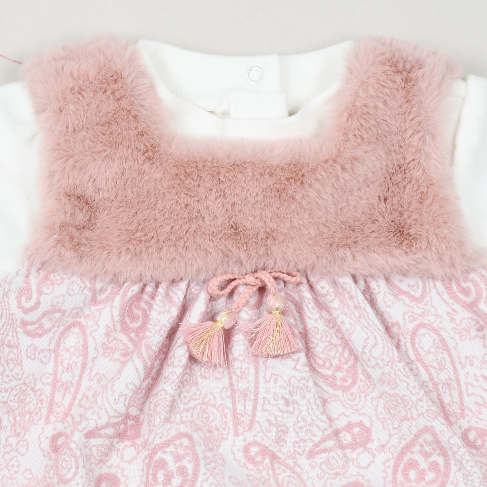 ■ 상세설명 : 유니크한 페이즐리 쟈가드 소재감이 돋보이는 사랑스러운 원피스입니다.