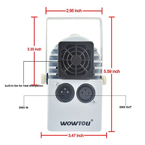 DMX, Auto-run and Sound-activated control methods available. In DMX mode, users can connect and control multiple units at the same time in Auto-run mode by DMX software or hardware controller; In Auto-run mode, you can choose different lighting effect among 12 lighting patterns; In Sound-Activated mode, the unit can only works by music or voice