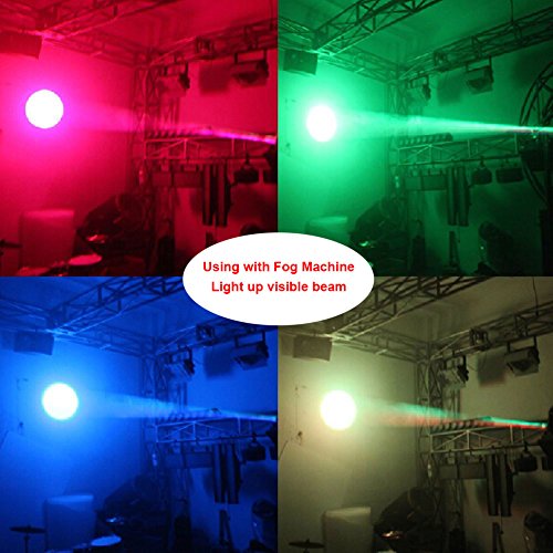 Colorful strobe(slow to fast) and full dimming(from 0-100%), best matching with fog machine to produce a visible light beam or project onto rotating mirror ball to fill the room with colorful dots.