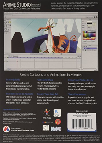 Create cartoons and animations from start to finish. Bring your imagination to life! Anime Studio is your complete animation program for creating 2D movies, cartoons, anime and cut out animations. Create your own desktop animated shorts in the style of South Park Studios, Nickelodeon Animation Studios, Cartoon Network Studios, Disney Animation Studios or use it to produce animations for film, video, commercials or streaming over the web. Anime Studio Debut is fun, easy, and exciting. It's a great tool for artistic expression and ideal for any age group. While it is very affordable, this entry-level animation software program is also very powerful. You won't find your ideas or projects limited by the features of the software. Detailed video tutorials make learning the tools a snap and pre-made content and characters help you get started right away. Get started today! Create cartoons and animations from start to finish. Bring your imagination to life! Anime Studio is your complete animation program for creating 2D movies, cartoons, anime and cut out animations. Create your own desktop animated shorts in the style of South Park Studios, Nickelodeon Animation Studios, Cartoon Network Studios, Disney Animation Studios or use it to produce animations for film, video, commercials or streaming over the web. Anime Studio Debut is fun, easy, and exciting. It's a great tool for artistic expression and ideal for any age group. While it is very affordable, this entry-level animation software program is also very powerful. You won't find your ideas or projects limited by the features of the software. Detailed video tutorials make learning the tools a snap and pre-made content and characters help you get started right away. Get started today!Feature