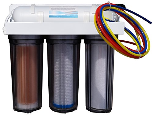 - 1 micron sediment filter, 1 micron carbon filter, color-changing mixed-bed DI filter