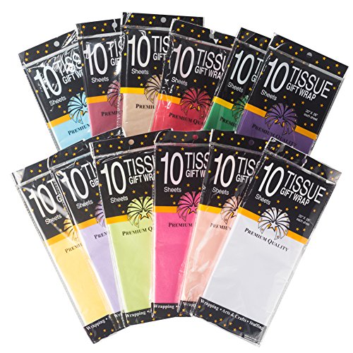 TEBERY 120-PIECE ASSORTED COLOR TISSUE PAPER, 20" X 26",12 COLORS (PACK OF 12)