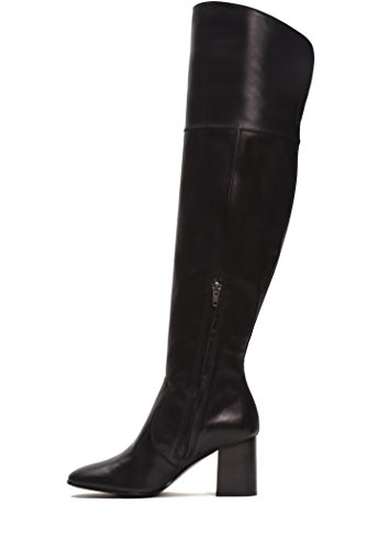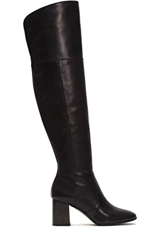 Product Description Handcrafted from soft Italian calf leather, this sleek sixties-inspired style features a square-shape mid heel, almond toe and cuff detail, which can be worn up or folded down. Perfect for A-line miniskirts and skinny jeans alike. 0