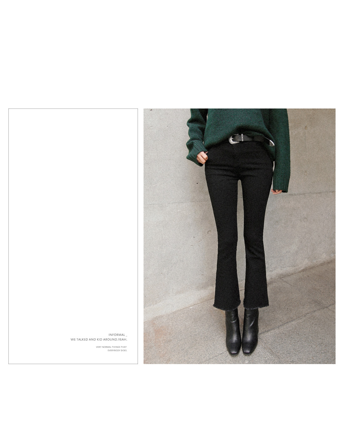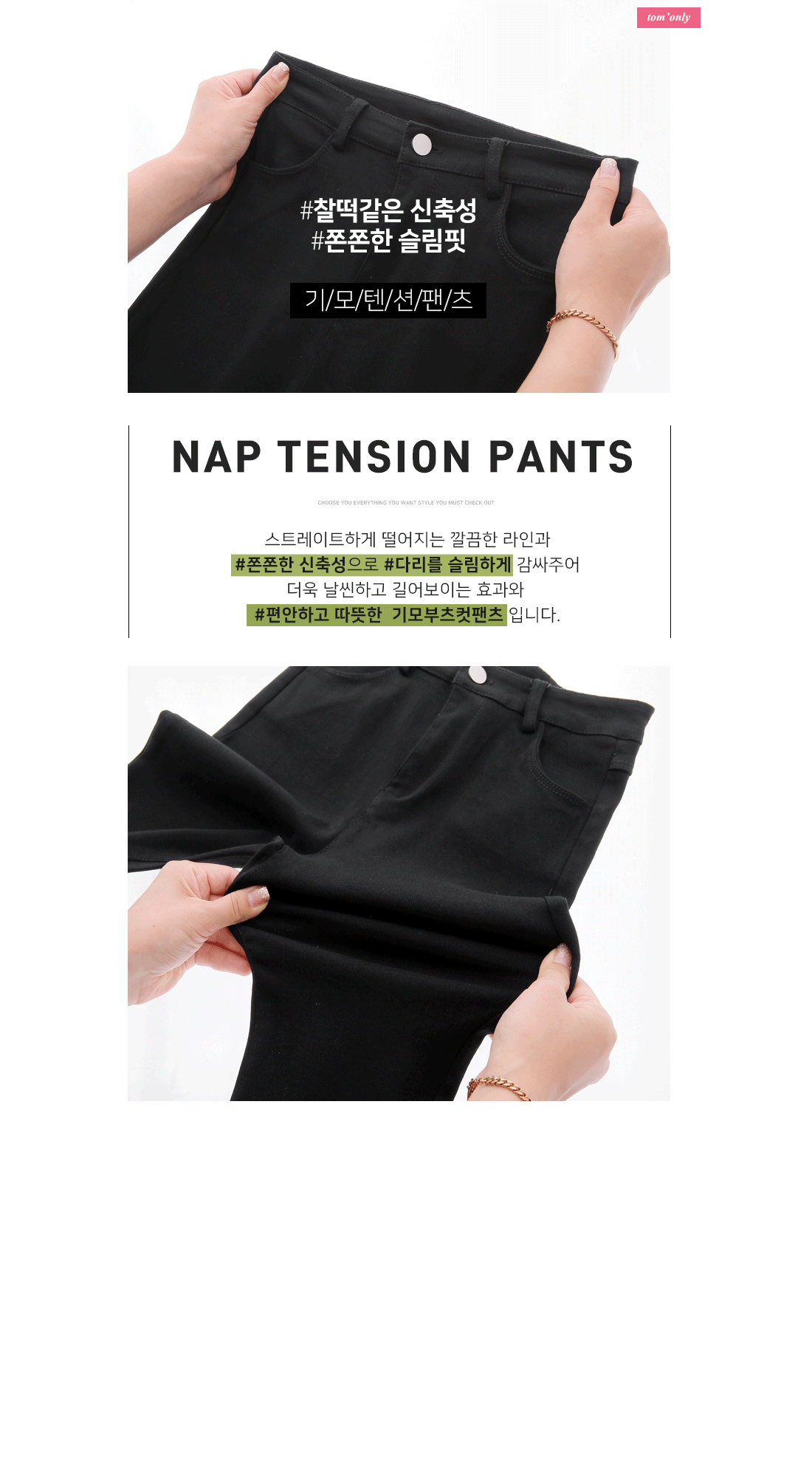MD COMMENT 쫀쫀하게 핏되며 찰떡같이 신축성이 좋은 부츠컷 블랙팬츠랍니다!이번 F/W시즌에는 좀 더 따뜻하게 준비된 기모 안감으로 겨울까지 편안하고 따뜻하게!!허리부터 허벅지까지 스트레이트하게 떨어지는 깔끔한 라인으로무릎 아래로 살짝 여유있게 떨어지며, 군더더기 없는 실루엣을 연출해 드려요.^^너무 좋은 신축성으로 다리를 슬림하게 감싸주며더욱 날씬해보이면서 길어보이는 시각적 효과와 함께 편안함까지일석이조를 다 같춘 팬츠랍니다 !!허리부분에도 신축성이 있어 착용 했을때 편안함을 즐기실 수 있구요.세련된 블랙 컬러감이 멋스러우면서 매력적이며밑단의 컷팅 디테일로 빈티지함과 룩의 완성도를 UP! 시켜 드렸답니다.양 사이드와 힙라인에 포켓으로 실용성도 겸비해 주었으며오픈 클로징은 프론트 지퍼와 단추버튼으로 도와드릴게요!M(44-55), L(55-66) 두 가지 사이즈로 나왔구요.모델은 블랙 M 사이즈를 착용했으며,평소 회지언니는 하의 27사이즈를 즐겨입는답니다!사이즈표를 한번더 확인해서 참고해주세요 ★*팬츠의 신축성이 좋아 세탁시 늘어짐이 있을 수 있어 단독세탁 추천해 드리구요.또는 그물망에 넣어 따로 세탁해주시면 늘어짐을 방지해 드립니다. ^^COLOR/SIZE 옐로우,블랙M(44-55),L(55-66)MODEL FITTING 블랙/M(44-55)
