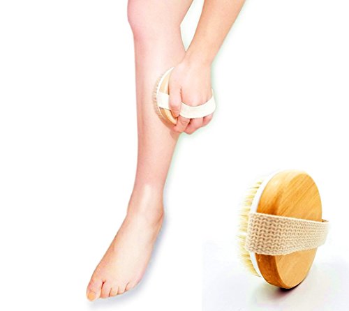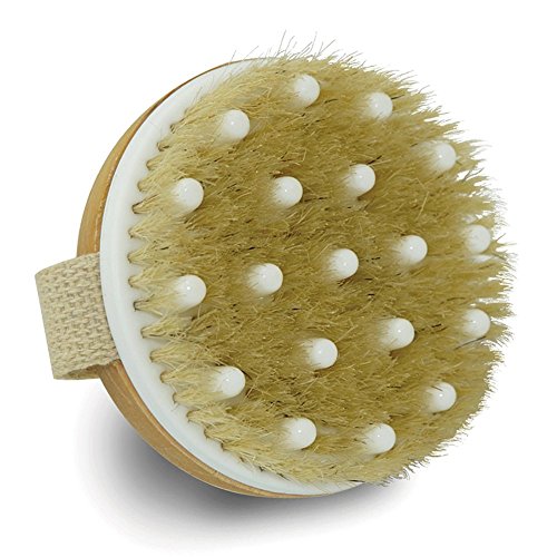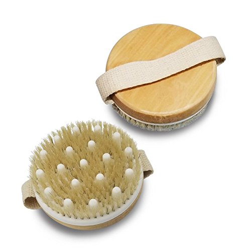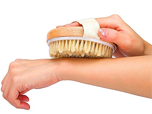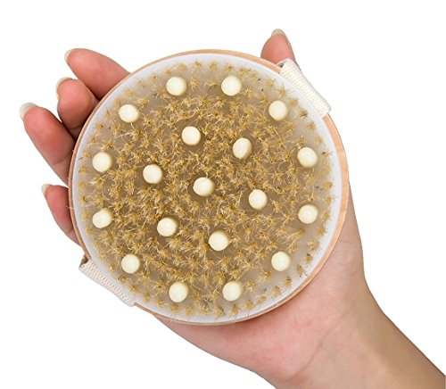 Abrrow Dry / Wet Bath Body Brush Natural Bristles with Massage Nodes for Better Exfoliation, Clear Dead Skin Cells While Reducing Cellulite and Toxins