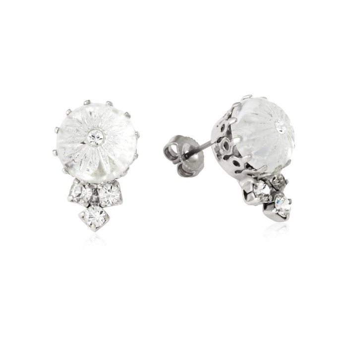 carving를 설치한 팬시 글래스와 스와로브스키 라인 스톤을 편성한 bijou 피어스(귀걸이).컷 글래스가 움직일 때마다 흔들림,페미닌한 이미지를 연출합니다.