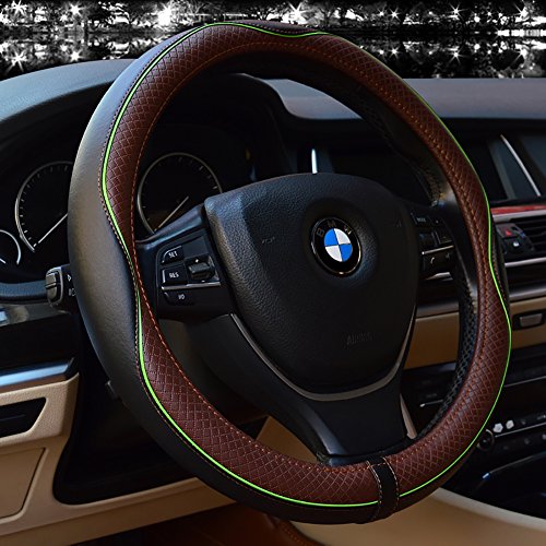 Fits all standard size steering wheels from 14.5 inch to 15 inches in diameter.Luxury Comfort: High quality genuine leather, breathable, anti-slip and massaging design.