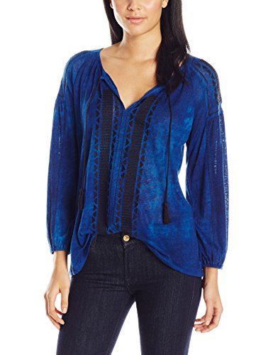 The Embroidered Peasant Top by Lucky Brand features long sleeves, split neckline and ribbed cuffs,7W62722 BLU,Linen blend,A hi-lo wash and embroidered detailing,26.5" long at sleeves,,End Of Season Clearance,Feature