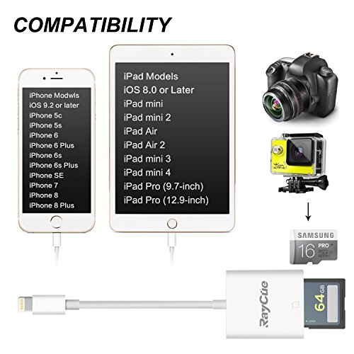 8 Pin Lightning to SD Card Camera Reader Adapter support iPhone models and iPad models. The system requires IOS 9.2 or up for iPhone.