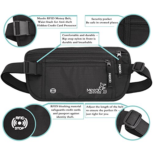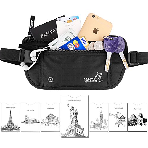 -. Title : Meedo(TM)RFID Blocking Wallet Travel Money Belt Hidden Waist Stash Waist Pack for Travel with 1x RFID Passport and 6x RFID Credit Card Sleeves Secure Wallet Save Travel wallet for Women and Men