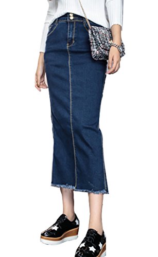 -. Title : ELPIS レディース ロング デニム タイト スカート セクシー スリット 大人 きれいめ 裾 切りっぱなし フリンジ カジュアル バック スリット S M L XL