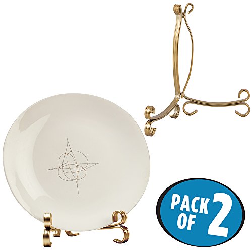 mDesign Easel Holders for Cookbooks, China Plates, Diplomas - Pack of 2, Large, Aged Brass