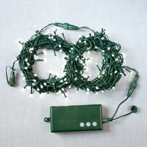 - Connect: Connect up to 2 additional (200 LED) strands for a total of 3x200 LED Strands OR 600 LED lights. ** Additional Sizes: Try our 100 LED Cool White Christmas String Lights. Battery: Each Battery Box requires 3 D Batteries (Not Included).