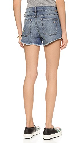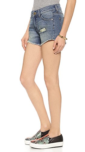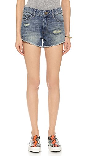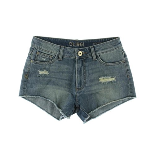 Frayed hems lend a deconstructed feel to these high-rise DL1961 cutoff shorts. Shredded holes and fading complete the well-worn effect. 5-pocket styling. Single-button closure and zip fly.