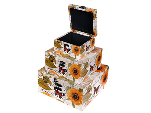 Indian Handicrafts Sunflower Square Fabric Box, Set of 3