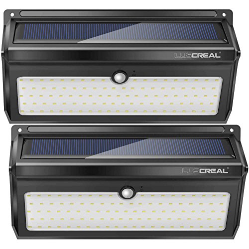 Solar Motion Sensor Lights Outdoor, 100 LED Super Bright Waterproof Wall Light Outside 2 Pack - LUSCREAL New Arrivals
