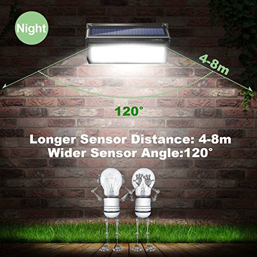 - 【Upgraged 125° Detection Range】: Built-in PIR motion sensor of our Upgraged solar lights can detect up to 125 degree with a longer sensor length and provides a broader range of lighting.