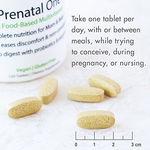 Nourishing both Mom's health and Baby's development, Prenatal One contains essential nutrients in potencies that deliver optimal nourishment and protection for moms and babies throughout pregnancy and nursing, including 30mg of non-constipating iron to support metabolism and red blood cell production, 400 IU of vitamin D2 to promote healthy bones and teeth, plus 100mg of vitamin C and 4,000 IU of vitamin A to support skin, eye, and immune health. The multivitamin also provides 800 micrograms of folic acid, which is critical for preventing neural tube defects and promotes healthy brain, and spinal development. A complete B-complex supports natural energy production and stress support. Vegan. Contains NO: gluten, wheat, milk, tree nuts, peanuts, eggs, fish, or shellfish.Feature