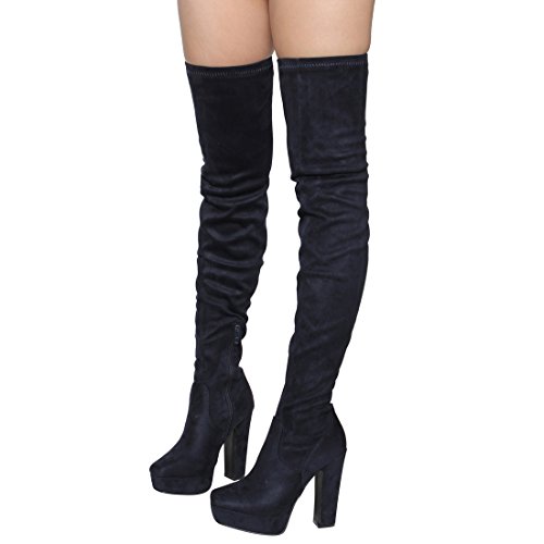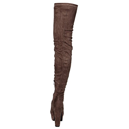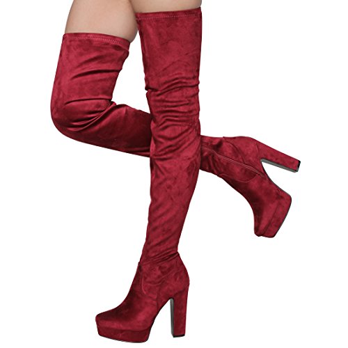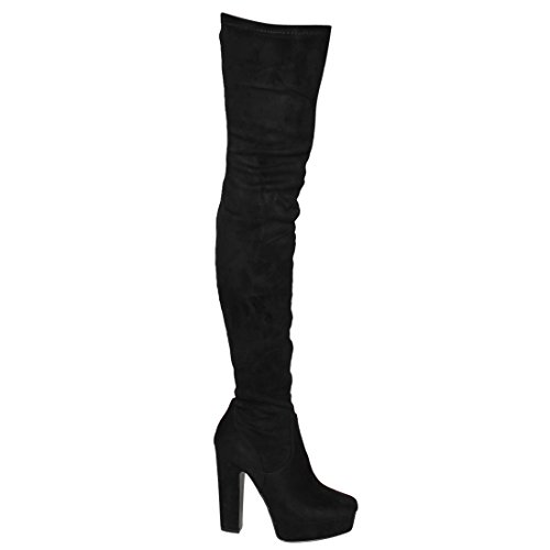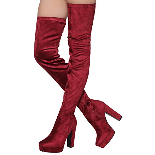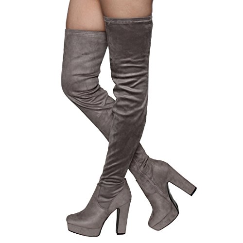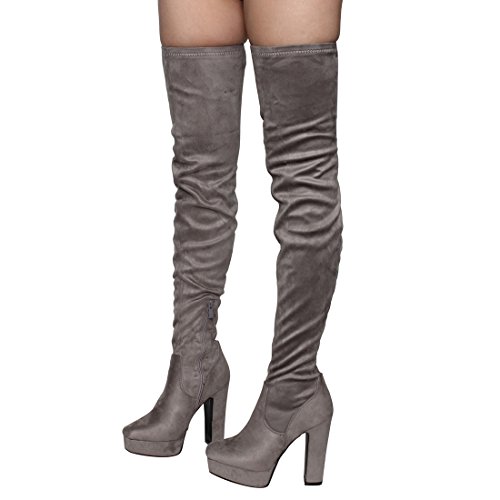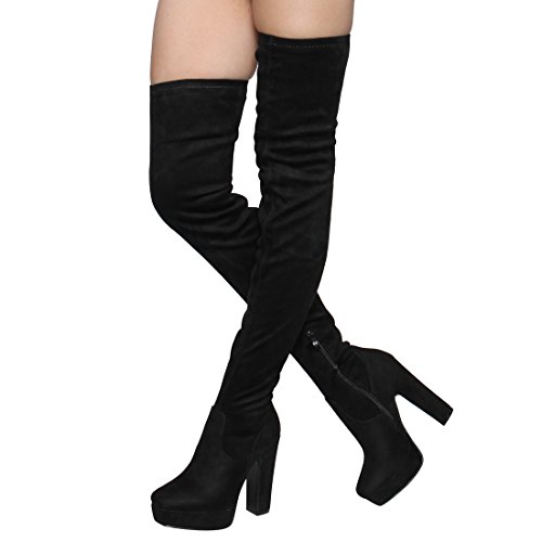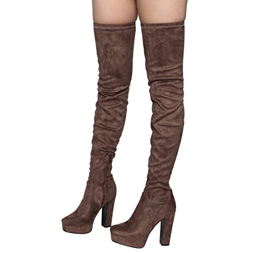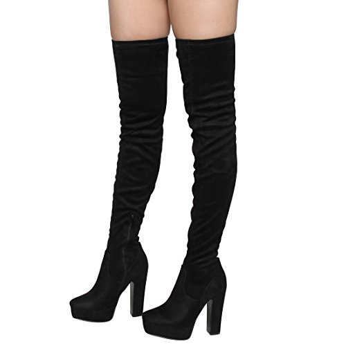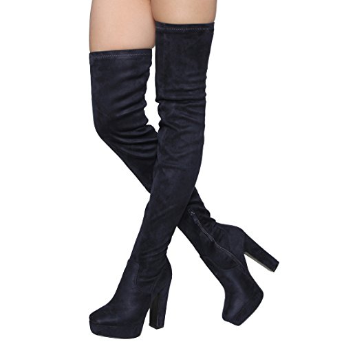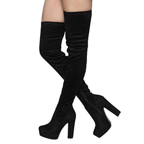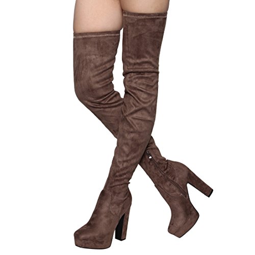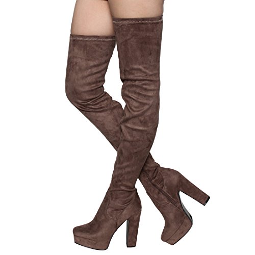 | Beston EJ20 Women's Side Zipper Chunky Heel Stretchy Snug Fit Thigh High Boots |