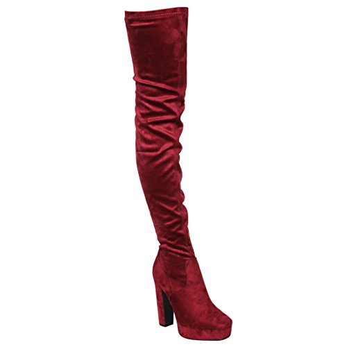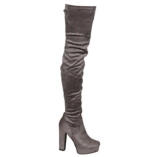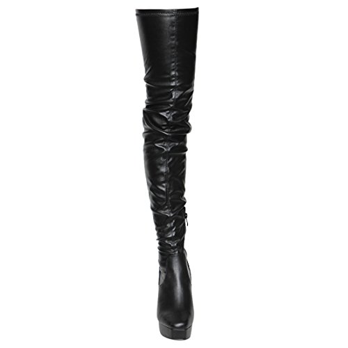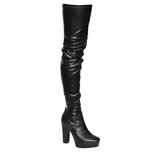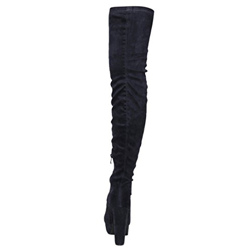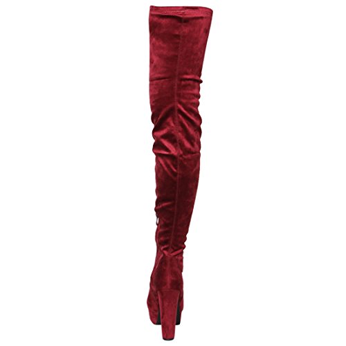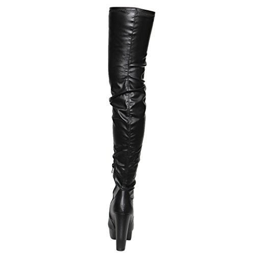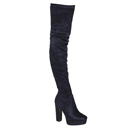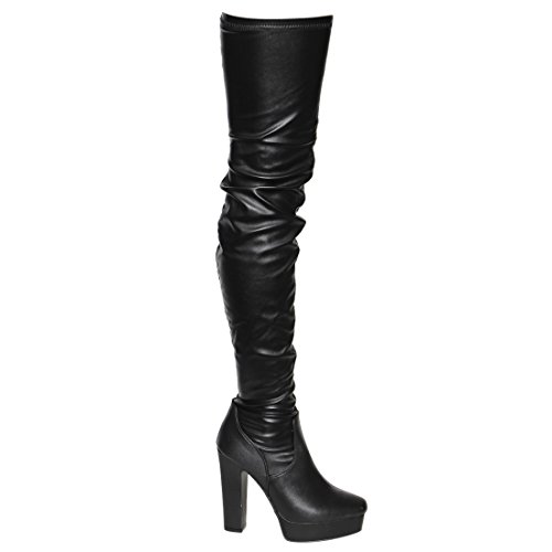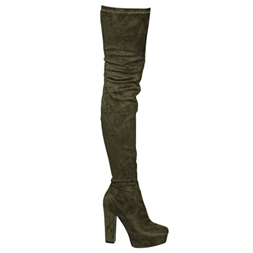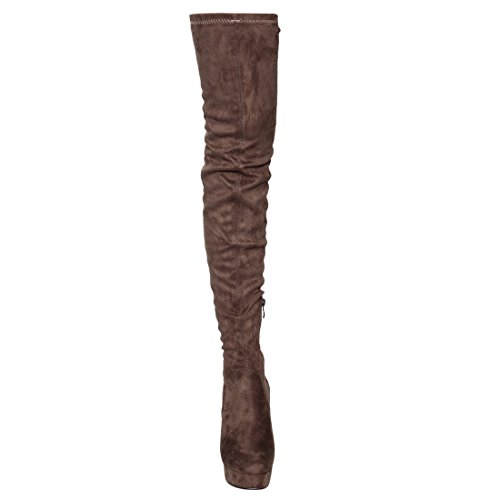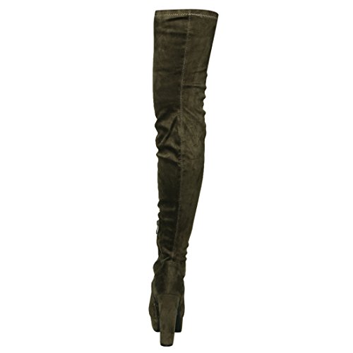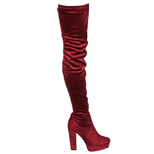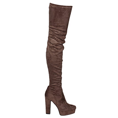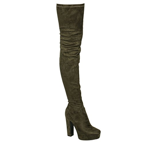 | Beston EJ20 Women's Side Zipper Chunky Heel Stretchy Snug Fit Thigh High Boots |