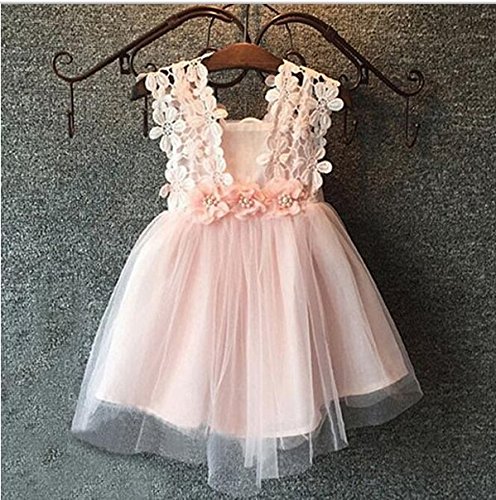 Baby Girls Sleeveless Lace Wedding Vintage Birthday Party Princess Flower Dress 1T Pink