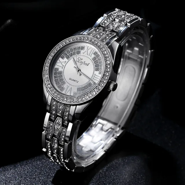 | [해외] LVPAI 뱅글 팔찌 시계 여성 패션 시계 2017 선물 블링 라인 석 크리스탈 아날로그 쿼츠 시계 손목 시계 Relogio |