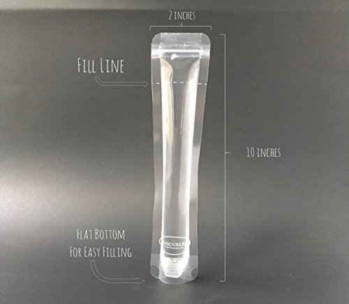 Self-Standing. Flat Bottom for Better Stability When Filling With or Without Funnel | Dimensions: 2 inches x 10 inches (5 cm x 25.5 cm) Qty 100