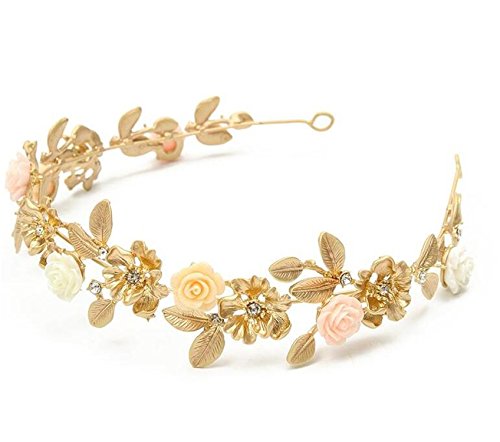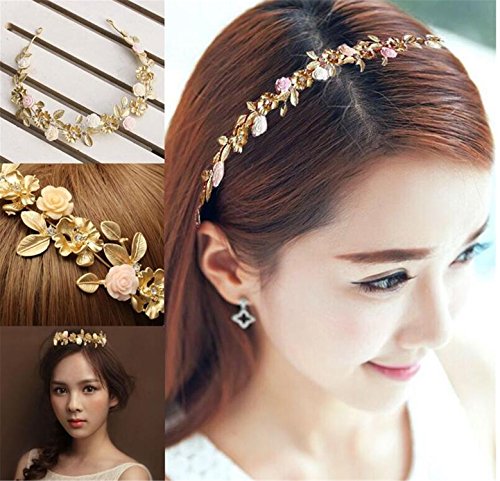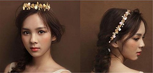 Wiipu Gold Leaf Headband Hairwear Headdress Flower Bridal Tiara Crown(A1067)